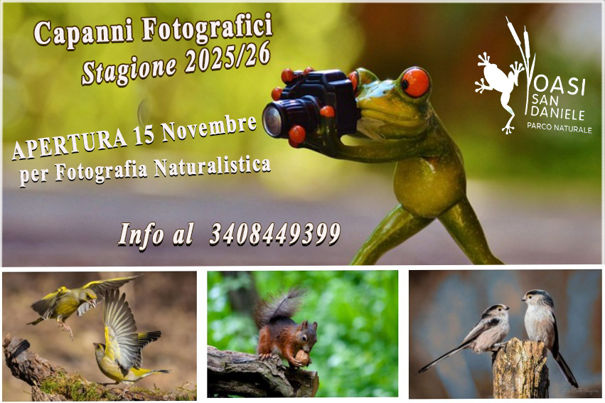 Lo staff dell' Associazione Oasi San Daniele annuncia l'apertura al 15 Novembre per la stagione 2025/26 per la fotografia naturalistica ai Capanni dell'Oasi
